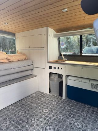 Furgoneta T4, doble puerta trasera. Panelada con madera, doble fila de asientos. ITV en vigor hasta Sept'25. Algunos detalles de chapa pero nada serio. Motor revisado en marzo del 25. Tiene dos filas de asientos traseros, aunque no se ven en las fotos, porque no están puestos. Pero por supuesto se incluyen.