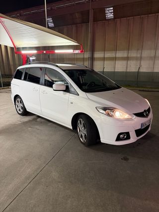 Mazda 5 2.0 Diesel 143cv – 7 plazas – 133.000 km – puertas eléctricas. Vendo mazda 5. El coche tiene 133.000 km reales y ha tenido un solo propietario antes que yo. Lo compré hace poco para hacer un viaje y ya no lo necesito, ya que no utilizo coche en mi día a día. Si no, me lo quedaría sin duda porque el coche va perfecto y tiene mucha fuerza. Estado mecánico muy bueno: •Distribución hecha •Embrague perfecto •Discos y pastillas prácticamente nuevos •Motor fino, sin ruidos Equipamiento: •Puertas traseras eléctricas automáticas •Retrovisores eléctricos •7 plazas •Aire acondicionado •Altavoces y bajos con un sonido increible •Radio •Elevalunas eléctricos •Isofix De chapa y pintura está muy bien, únicamente tiene algún roce en el parachoques trasero que ya estaba del anterior dueño (se puede ver en fotos). Es un coche muy espacioso, fiable y cómodo para viajar, con consumo contenido para su tamaño. Se puede ver y probar sin compromiso