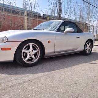 Mazda MX-5 NB2 (2001) – 198.000 km Se vende Mazda MX-5 del año 2001, motor 1.6 gasolina, con 198.000 km reales. En muy buen estado de mecánica y listo para disfrutar. ✅ Embrague nuevo hecho hace solo 2.000 km ✅ Llantas Rota 15x7 (2 en perfecto estado, 2 con unos roces) ✅ Suspensión coilover Tein regulable de calidad instalada y relativa homologacion en la libreta ✅ ITV al día pasada sin defecto el 4 septiembre 2025 y mantenimiento siempre al día (se renovarà antes de septiembre ✅ Muchos detallitos hechos (arreglo de rejillas de aire condicionado, arreglo de coninetes del mecsnismo de las ventanillas, radio 2 din bluethoot pioneer, cambio de aceite y filtro periodico, etc ✅ Techo de lona en buen estado ✅ Clásico en potencia, muy divertido y fiable ✅ Etiqueta Ambiental B para circular por la ciudad dispongo de las llantas y sospension original Ideal para quien busque un roadster ligero, con sensaciones puras de conducción y estética contesto a preguntas. tener en cuenta que es un coche de 24 anos ya, se ha mimado pero tiene sus anos, el asiento del conductor ensena su edad y la pintura tiene sus detalles. podría considerar cambios con NC con techo duro retractable