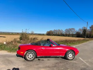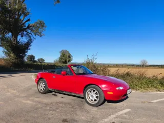 Miata model USA 1.6l. 115CV, 1a matriculació a Alemanya (1991), el tinc des de 1995. En bon estat, motor desmuntat i muntat de nou fa 10.000 km (factura adjunta). En garatge, fa pocs km. Hardtop inclòs ITV fins a l'abril 2026. Mòdul ràdio actualitzat. Es pot veure i provar a Girona o Barcelona.