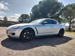 Mazda RX-8. Matrículado en 2007, fabricado en 2006. Motor rotativo con dos rotores en línea. 192 CV. Caja manual con 5 marchas. Gasolina. 80000 km. Propietario únicamente solo una familia con solo dos conductores. ITV recién pasada. Se adjunta informe DGT. Libro mantenimiento sellado. Asientos impecables. Suspensiones Koni regulables y muelles Eibach. Neumáticos Michelin Pilot Sport Cup 2. Muy divertido de conducir. Se vende por falta de tiempo para disfrutarlo. NO SE DEJA PROBAR. Único defecto: pequeñas grietas en el salpicadero a causa del sol. Se atienden toda clase de dudas.