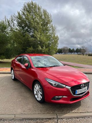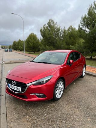 Mazda 3 Sedán Restyling 2018 Automático | 2.0 Gasolina 120cv | 86.000 km | Etiqueta C Vendo Mazda 3 Sedán restyling 2018, vehículo nacional, motor 2.0 gasolina Skyactiv de 120cv con cambio automático. Coche muy fiable, cómodo y bien cuidado, ITV en vigor hasta noviembre 2026. Tiene 86.000 km reales, uso particular y revisión completa recién realizada: cambio de aceite, filtro y líquido de frenos. Dispongo de informe DGT completo. No tiene fallos ni avisos, está perfecto mecánicamente y listo para usar. Dispongo de ultimas facturas, libro de revisiónes digital y 2 llaves. Acabado muy alto, con asientos de cuero beige, muy pocas unidades en está versión. Color Rojo Mazda (Soul Red). Equipamiento: Asientos de cuero beige Sistema de sonido BOSE (9 altavoces) Head-Up Display Navegación Cámara de marcha atrás Sensores de aparcamiento delanteros y traseros Detector de ángulo muerto Detector de señales de tráfico Control de crucero Climatizador automático Keyless Go (apertura y arranque sin llave) Retrovisores plegables eléctricamente Conexión Bluetooth Llantas de 18 pulgadas La carrocería está en muy buen estado general, con un par de arañazos estéticos, sin golpes ni partes estructurales afectadas (ver fotos). Interior muy cuidado. Coche muy completo y difícil de encontrar con este nivel de equipamiento y cambio automático. Contacto solo gente realmente interesada, acepto prueba mecánica. No cambios. No financiaciones.