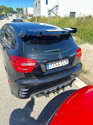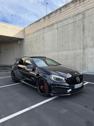 Se vende Mercedes-Benz A45 AMG 4MATIC, matriculado a finales de 2013, con 157.000 km, en muy buen estado. Vehículo muy bien equipado y todos los componentes originales incluidos. - Duerme en garaje privado - Siempre gasolina 98 demostrable - Batería nueva cambiada (03/01/2026) Motor, transmisión y prestaciones • Motor 2.0 Turbo AMG • Cambio automático de 7 velocidades • Tracción total 4MATIC • Stage 1: 410 CV / 535 Nm • Downpipe Drakonic (se entrega la original) • Válvula de descarga Turbosmart (se entrega la original) • Filtro de aire K&N • Escape Performance original AMG con válvulas (pops & bangs de serie) • Barra de torretas delantera Wiechers • 3 modos de conducción: Eco, Confort, Sport Equipamiento exterior • Llantas AMG de 19 pulgadas • Neumáticos Michelin Pilot Sport 4S homologados Mercedes nuevos (4 unidades) • Techo panorámico • Luces de xenón • Parrilla delantera estilo GT • Alerón trasero • Difusor trasero estilo fibra carbono (se entrega el original) • Carcasas de retrovisores en fibra (se entregan las originales) • Retrovisores eléctricos y abatibles, con intermitentes dinámicos • Derivabrisas delanteros • Vinilo exterior estilo AMG One Interior y confort • Asientos semibaquet AMG • Cinturones de seguridad rojos • Volante deportivo AMG achatado • Freno de mano eléctrico • Control de crucero y limitador de velocidad • Iluminación interior LED y de ambiente • Sistema de sonido Harman Kardon • Pantalla Android de 12,3” con carplay y android auto (8 GB de RAM) (se entrega la pantalla original) - Podria barajar opciones de cambio de coches del mismo estilo/prestaciones y dinero a mi favor. Si ofreceis cambios que tengan sentido porfavor. Solo gasolinas y no tracciones delanteras.