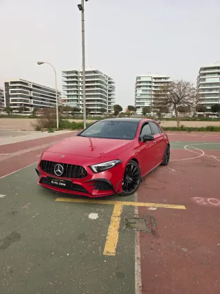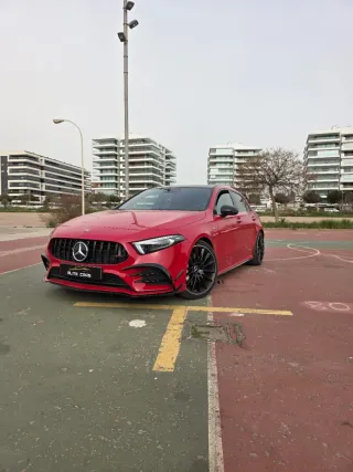 MERCEDES CLASE A 35 AMG 4MATIC 5 puertas. Ponemos a la venta esta impecable unidad de MERCEDES CLASE A 35 AMG en color Rojo Granate. Matriculado el 11/07/2019 2 propietarios. A destacar: Sistema multimedia MBUX con reconocimiento por voz “Hey Mercedes” y conectividad Apple CarPlay & Android Auto. Cuadro de instrumentos digital + pantalla central. Climatizador automático de dos zonas. Iluminación ambiental hasta 64 colores. Volante AMG Performance en cuero Nappa. Asientos deportivos AMG, posibilidad de eléctricos y calefactados según configuración. Kit estético AMG con paragolpes específicos, parrilla AMG con lamas dobles y difusor trasero agresivo. Llantas AMG 18″ de serie o 19″ opcionales. Faros Multibeam LED adaptativos Paquete Aerodinámico AMG / Night Package disponible (detalles en negro y spoiler trasero). KEYLESS-GO / arranque sin llave. Cámara de visión 360º + Parktronic. Head-Up Display. Techo panorámico eléctrico. Sistema de sonido premium Burmester®. Asientos eléctricos con memoria (piloto/copiloto). Carga inalámbrica smartphone (si incluye paquete). Asistentes a la conducción (frenado activo, mantenimiento de carril, control de crucero adaptativo, detección ángulo muerto, etc.). Paquete aerodinámico A45s Cristales traseros oscurecidos térmicos. Libro completo de revisiones. - El vehículo se entrega revisado - Cambio de nombre (+299€) - Disponemos de FINANCIACIÓN. - Valoración de vehículo como parte de pago. - Garantia de un año. - Anuncio válido salvo error tipografico. Si necesita más información, no dude en contactarnos.