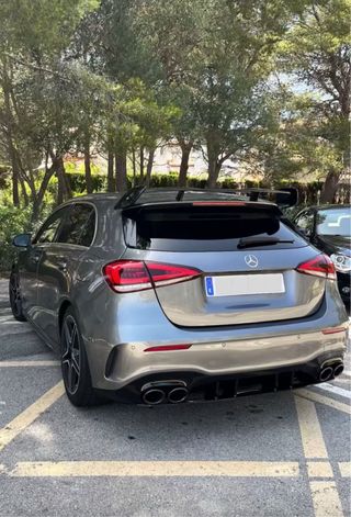 Mercedes-Benz A200d pack AMG con acabado exterior en gris oscuro mate. Coche al detalle. Replica exacta del a45. Revisiones al dia, ultima revisión hace 1000km para venderlo. -Con itv y papeles al dia. Siempre en parking privado. - Modelo w177 Interior e exterior impecable. Extras: - Llantas amg deportivas -Parrilla amg -Aletas delanteras y traseras amg -Ditusor amg -Aleron amg - Tintado de lunas - Escape intermedio recto y final con doble salida y 4 colas del a45. Se entrega el escape de origen y la posibilidad de entregarlo con el puesto. Se acepta prueba mecánica de cualquier tipo. Precio negociable. Gente seria !
