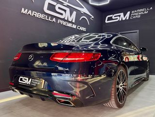 Mercedes-Benz S500 4MATIC Coupé AMG 462cv BITURBO -Año 05/2016 y 122.000km CERTIFICADOS #TRANSFERENCIA INCLUIDA y 1 AÑO DE GARANTÍA PREMIUM -Vehículo con TODO EL MANTENIMIENTO EN SERVICIO OFICIAL MERCEDES **Mantenimiento completo recién hecho con cambio de bujías y filtro/aceite de caja de cambios** -IMPECABLE ESTADO, motor, mecánica, chapa, pintura, interiores, neumáticos... PERFECTO #EQUIPAMIENTO *Paquete completo deportivo AMG PLUS *Motor gasolina 4.6 V8 Biturbo con 462cv *Color MANUFAKTUR AZUL CAVANSITA Metalizado *Cambio automáticos 9G-TRONIC de 9 velocidades con levas en el volante *Tracción 4MATIC *Suspensión neumática AIRMATIC con regulación de altura y dureza *Tren de rodaje deportivo AMG *Frenos deportivos AMG *Llantas AMG 20” *Sonido surround BURMESTER con paquete de sonido PREMIUM *Escape deportivo AMG de 2 salidas *Techo panorámico fijo *Faros LED dinámicos y ópticas traseras LED *Calefacción auxiliar con mando a distancia con pantalla *Volante deportivo AMG multifunción en Cuero con regulación eléctrica y calefactado *Acabado interior CUERO EXCLUSIVO negro/antracita *Inserciones interiores en madera de Álamo *Asientos deportivos en piel multicontorno dinámico, adaptativos y microperforados con regulación eléctrica, calefactables/ventilables, memoria y masaje *Apoyabrazos central y de puerta calefactados *HEAD UP DISPLAY *Paquete EXCLUSIVE *Cuadro de instrumentos con display TFT 12,30” *Pantalla grande central multimedia con navegación COMAND ONLINE, DVD y conectivad total *APPLE CAR PLAY & ANDROID AUTO *LIVE TRAFFIC INFORMATION *Modos de conducción (ECO + Sport) *Revestimiento techo en microfibra dinamica negra *Cortina eléctrica para luneta trasera *SURROUND VIEW y PARKTRONIC 360 *Iluminación interior LED configurable varios colores *KEYLESS GO *Portón de maletero eléctrico con función manos *ASISTENTES: COLLISION PREVENTION ASSIST, detección de señales de tráfico, ATTENTION ASSIST (Detector de fatiga) #VALOR PARA CAMBIOS 63.000€