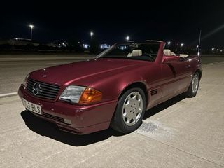 Mercedes 500SL r129 5.0 326cv año 91, 111.000kms, nacional. Está rematriculado pero es matrícula original de Madrid, la cuál se podría recuperar ya que el coche está registrado como histórico. Unidad en muy buen estado debido a su bajo kilometraje. Revisión completa en taller especialista en Mercedes y 4 neumáticos nuevos hace 1 año (fecha de fabricación octubre de 2024). Desde entonces se han recorrido apenas 1000kms. Se cambió aceite y filtro del motor, líquido de frenos, aceite dirección, aceite del diferencial, bujías, correa de accesorios y copelas de los amortiguadores delanteros. El coche anda fínisimo. Mecánicamente no tiene ningún problema. Está recién pulido y encerado, aunque la pintura tiene algunos defectos. El color actual es Blauschwartz metallic (gris oscuro), pero su color original era Almandinrot metallic (granate). No tiene óxidos. El hardtop ha sido retapizado en gris oscuro hace 1 mes. Mantiene su capota original con la tela en buen estado (solo tiene algún pequeño rasguño en los pliegues superiores traseros), pero el plástico de la ventana está rajado y habría que cambiarlo. El sistema hidráulico funciona correctamente aunque hay uno de los hidráulicos superiores que fuga. Tiene asientos eléctricos con memoria y calefactados. Como defectos destacables, tiene anulado el radiador de la calefacción por fuga. El aire acondicionado funciona perfectamente (climatizador). El limpiaparabrisas en la primera posición funciona de manera intermitente. No humea ni consume aceite. Es un primera serie, por lo que no tiene problemas con cables ecológicos de años posteriores. ITV en vigor hasta abril de 2028. Acepto prueba en taller sin compromiso, siempre y cuando sea en el área de Barcelona o alrededores.