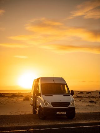 🚐 Mercedes Sprinter Camper – Totalmente equipada Vendo Mercedes Sprinter camperizada con ruedas de tacos, ideal para pistas y caminos. Perfecta para 1 o 2 personas. Cama 1,40 x 1,75, se puede estar de pie, placa solar 175W, 2 baterías, convertidor 230V 1000W, nevera de compresor Dometic (31L), fregadero, ducha trasera con depósito 60L, baño portátil, menaje completo y garaje para tablas de surf. Furgo cómoda, fiable y lista para viajar desde el primer día. Ubicada en Corralejo (Fuerteventura). lo vendo con negocio de Yescapa funcionando 4,93 de puntuación y muchas reservas. También posibilidad de gestión de las reservas.