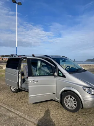Se vende Mercedes Viano EXTRALARGA. Motor 3.0 V6 de 204cv con cambio automático. Bola de enganche sin estrenar. 8 plazas. Revisiones al día. Ruedas al 90%. Matriculada como turismo. Pantalla Android con AndroidAuto y Carplay. Cámara marcha atrás. Sensores de aparcamiento delanteros y traseros. Tapicería de cuero. Asientos delanteros calefactables. Asientos orientables. Lunas tintadas. Aire acondicionado en perfecto funcionamiento. Km reales se pueden comprobar con el informe de tráfico. Todo funciona perfectamente. ITV en vigor hasta junio 2026.
