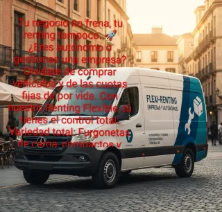 Tu negocio no frena, tu renting tampoco. 🚀 ¿Eres autónomo o gestionas una empresa? Olvídate de comprar vehículos y de las cuotas fijas de por vida. Con nuestro Renting Flexible, tú tienes el control total: Variedad total: Furgonetas de carga, compactos y SUVs para cualquier necesidad profesional. Cero ataduras: Sin permanencia. Devuelve o cambia el vehículo cuando tu volumen de trabajo lo pida. Todo incluido: En una sola cuota tienes seguro a todo riesgo, mantenimiento, averías e impuestos. Ventajas fiscales: Desgrava hasta el 100% del IVA y el gasto en el IRPF/Sociedades. Paga solo por lo que usas. Sin entradas, sin sorpresas.