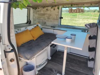 Furgoneta camperizada, no homologada, placa solar, luz led en toda la furgoneta, enchufes, nevera, cama con colchon nuevo. Va de maravilla y es muy cómoda para viajar. Bien aislada y suelo de tarima. La furgoneta esta en un pueblo de Toledo a 65 km de Madrid.