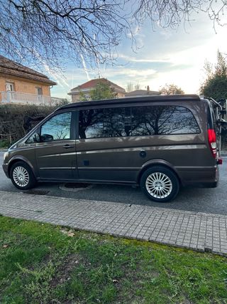 Mercedes Vito 111 CDI 298.000 km En la parte delantera consta de un banco con 3 asientos En la parte trasera muebles no homologados anclados a los enganches de carga. CONSTA: Aislamiento completo con kaiflex Panelado Techo solar homologado Gancho de remolque homologado Bacas marca Cruz Cama desplegable de individual a doble ( 115 ancho) con colchones a medida de viscoelástico. La cama queda modo banco y todo su parte inferior está aprovechada para almacenaje Mueble encimera con fregadero y almacenamiento Se vende con batería Bluetti incluída en el precio (recargable en el enchufe de 12 v o en casa) con tomas de 220v, 12v , USB, carga inalambrica y linterna Se vende con los los oscurecedores incluidos Ruedas cambiadas en el 2025 Mantenimiento hecho y batería cambiada en Febrero de 2026