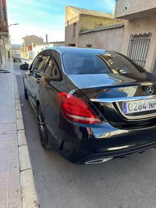 Coche Mercedes-Benz Clase C (pack AMG) - 4 ruedas cambiadas. - Techo corredizo panorámico. eléctrico de cristal. - Tracción trasera. - Ayuda activa para aparcar. - ABS. - Collision prevention assist plus. - Parktronic (trasero y delantero). - Faros LED. - Llamada de emergencia Mercedes-Benz. - Selector agility selector. - Cierre centralizado.
