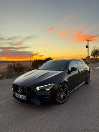 Mercedes CLA 45 s Amg 4 matic. Todas las revisiones en Mercedes oficial. Neumáticos recién cambiados. Paquete RACE Volante Alcántara amg achatado 4 escapes salidas amg Tracción 4 ruedas (4 matic) Parrilla panamericana frontal Paquete amg interior y exterior Disco de frenos rojo amg Cinturones rojos Asientos backets recaro amg Asientos eléctricos y calefactables Paquete night Cámara marcha atrás Faros full led Asistentes de conducción Carga inalámbrica Sistema sonido envolvente Burmester ESCUCHO CAMBIOS