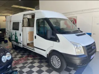 Camper Ford Tránsit Motor 2.5 5,5 metros de largo 2 ventanas 1 claraboya en el baño Altura interior 1'80 cm Placa solar de 125w Baño con Ducha interior Ducha exterior, parte trasera. Cocina de Gas , 2 fuegos Fregadero Nevera, con congelador pequeño. Incluye calefacción estacionaria nueva, sin montar. 7 Armarios de Almacenaje. 75 litros de aguas limpias 75 litros de aguas sucias Si necesitas saber algo más, escríbeme!