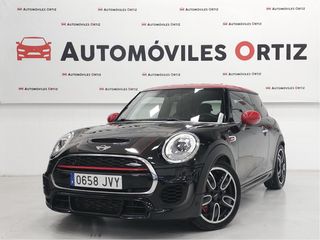 - Distintivo ambiental C verde. - Kilometraje certificado. -Historial de mantenimiento en servicio oficial disponible. - 2 llaves y manuales. - ITV en vigor. - Unidad en impecable estado. - Equipamiento opcional: • Color A94 negro medianoche. • Tapizado mixto en cuero carbon black y tela dinámica. • Equipo de sonido Hi-fi Harman Kardon 226 - Suspensión adaptativa deportiva Ajuste automático de la suspensión según el estilo de conducción y la vía. 249 - Volante multifunción Controles integrados en el volante (audio, teléfono, etc.). 2LY - Llantas 18" JCW Cup Spoke bicolor. 2TB - Transmisión automática deportiva Caja de cambios automática con modo Sport y levas. 2VG - Performance Control Mejora dinámica y estabilidad en curvas. 2XC - Volante de cuero John Cooper Works 313 - Paquete de retrovisores exteriores Retrovisores eléctricos y con funciones adicionales. 345 - Chrome Line Interior 346 - Chrome Line Exterior 359 - Paquete de visibilidad Conjunto de sistemas que mejoran la visibilidad. 3A3 - Techo y carcasas de retrovisores en rojo Personalización exterior en contraste rojo. 402 - Techo panorámico de cristal 420 - Cristales con protección solar 423 - Alfombrillas de velours 430 - Paquete de retrovisores interior y exteriores Incluye antideslumbrante automático y ajuste eléctrico. 431 - Espejo interior antideslumbrante automático 470 - Anclaje para asiento infantil ISOFIX 493 - Paquete de compartimentos 4AA - Tapizado del techo en antracita 4CI - Detalles de interior en negro carbón. 4DC - Superficies interiores Black Chequered Molduras decorativas con diseño ajedrezado negro. 4FN - Asientos deportivos John Cooper Works 4V9 - Paquete MINI Excitement Iluminación ambiental y funciones de personalización. 4VA - MINI Driving Modes (Green, Mid, Sport). 507 - Park Distance Control (PDC) trasero 521 - Sensor de lluvia Activación automática de limpiaparabrisas.