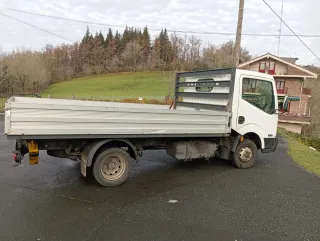 Camión Nissan Cabstar con caja abierta. En muy buen estado interior y exterior. Tracción trasera, rueda gemelas. Todas las ruedas en muy buen estado. Suena y anda perfecto. ITV en vigor. Medidas de caja: 2,10x3,65. Cartolas de aluminio y peldaños de su ida a caja en la cartola trasera. Recién cambiado aceite y filtros. Capacidad de carga 1520kg