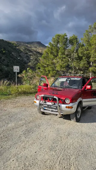 Nissan Terrano 2 1994 100cv 3 puertas. Tiene 145.000 kms reales. Motor diésel 100cv 2.7 TD versión LX. Muy bien cuidado. Amortiguadores cambiados a los 120.000kms por unos KyB. Lleva neumáticos 235/75 R15 con llanta desplazada y neumáticos de taco, se entregan a parte las 4 llantas de serie con 4 neumáticos nuevos Cooper discoverer ATT3 215/80 R15 con menos de 5.000kms. Todos los aceites y filtros cambiados con 142.000kms. No tiene aire acondicionado, el altavoz de la puerta izquierda funciona regularmente y el asiento de el conductor esta dañado por el lateral ( se puede apreciar en las fotos). Pastillas delanteras cambiadas en 2025, atrás lleva frenos de tambor. El 4x4 y la reductora funcionan perfectamente. Snorkel homologado y bola de remolque de 13 polos recién instalada pendiente de homologación, tiene ITV hasta junio de 2026. Fuelles de palier cambiados los 2 en 2025. Soy el tercer propietario, lo compre en 2023 con 120.000kms. Termostato cambiado en 2023. No se aceptan cambios. Se escuchan ofertas.