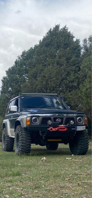 se vende Nissan patrol gr y61 rd28t todo homologado , ITV en vigor ruedas 37" Maxxis trepador y otro juego de bf mud las de las fotos , soporte y 5° rueda igual suspensión Profender +7'5 nuevos ,tirantes , protección de bajos , barra dirección , paragolpes , winch , radiador ... culata nueva , correas ... etc , bomba mecánica con embolo de 12 , turbo tgv .. todo recién echo , bloqueó delantero y trasero arb , grupos cortos ... etc etc , tengo muchas piezas Solo cambio por Toyota land Cruiser largo