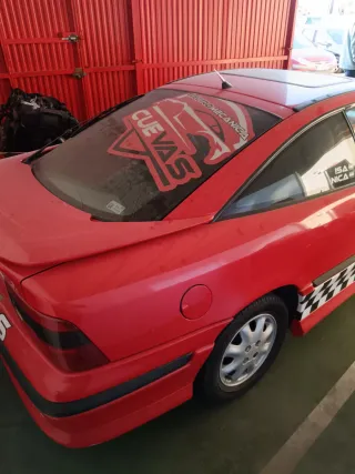 Opel calibra. Naranja y negro. ITV hasta abril del año 2026. Gasolina. Correa de distribución y bomba hecha. Aceite y todos los filtros nuevos. Motor 2.0 130cv,procedente de Opel kadet gsi. Instalación completa Opel kadet gsi. Ruedas al 90%. Llantas Opel Astra gsi. Barra estabilizadora ejes traseros. Botón de arranque. Elevalunas eléctricos. Cierre centralizado. Alarma. Volante homologado en ficha técnica. Suspensión roscada nueva homologada en ficha técnica. Interior en muy buen estado. Techo descolgado. Habría que arreglar algun desperfecto. Alguna vez se enciende la luz fallo motor, pero no afecta a la conducción. Sin seguro. Precio 2250€ negociables. 652975694.