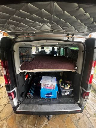Opel Vivaro 2.5 CDTI, año 2011, con 250.000 km. ITV recién pasada (febrero 2026) y todas las revisiones y mantenimientos al día. Recientemente se han cambiado los frenos y la correa de accesorios. Es una furgoneta cuidada, utilizada para viajar y disfrutar, no para trabajo diario con carga pesada. Camperización funcional lista para viajar. Una furgoneta compacta, discreta y muy manejable, ideal tanto para el día a día como para escapadas improvisadas y viajes más largos. Además, gracias a su configuración, sigue siendo un vehículo muy práctico para carga y transporte, por lo que combina uso camper con utilidad real como furgoneta. Cómoda de conducir, tanto en viajes largos como en ciudad. Entra en parkings y garajes Etiqueta medioambiental B Sin necesidad de homologar, todo desmontable Bajo consumo Equipamiento: Control de crucero, cambio automático, asientos delanteros calefactables, modo nieve / carga pesada, fundas para nieve, ordenador de a bordo, sensor de marcha atrás (park assist), portabicis Fiamma para 2 bicicletas. Camperización: Pensada para viajar fácil y ligero. 5 plazas para viajar y 3 (2 adultos + niño) para dormir. Cama de 150 × 190 cm, colchón de 3 piezas muy cómodo. Aislamiento completo con Kaiflex 20 mm (frío y calor mucho más llevaderos). Oscurecedores/aislantes para todas las ventanas. Instalación eléctrica: Segunda batería AGM 100Ah, inversor senoidal 1000W, tomas de 12V y 220V, luces adicionales en techo. Perfecta para pasar noches sin enchufe con autonomía. Mobiliario y almacenamiento: Mueble lateral con almacenaje y tomas de corriente, mueble-cama con espacio para nevera tipo Mobicool FR40L (no incluida), bolsilleros y huecos para organizar ropa, comida y enseres de viaje. Una furgoneta lista para viajar, con todo lo necesario para acompañarte en tus aventuras.