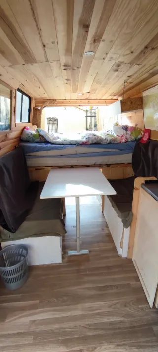 Vendo mi Iveco 35-8.1 del año 1995. Durante el último año ha sido mi casita, mi refugio y mi compañera de viajes, así que la he cuidado con mucho cariño. No tengo prisa por venderla, por lo que solo atenderé ofertas serias. Busco a alguien que la valore y quiera seguir dándole vida. La camperización la he hecho íntegramente yo, pensada para vivir cómoda y sencillamente. 🏡 Camperización: -Aislada con lana de roca -Revestimiento interior de madera de pino -Altura interior aproximada de 1,85 m -Dos ventanas abatibles, una ventana fija y claraboya -Cama extensible: Cerrada: 1 m x 1,70 m Abierta: 2 m x 1,70 m -Tanque de agua nuevo de 125 L -Bomba de agua Vevor, muy potente (posibilidad de instalar ducha) -Nevera pequeña Vevor -Cocina con horno (no fija: la pongo y quito para la ITV) 👉 La furgoneta está homologada, excepto la cocina por este motivo. 📐 Dimensiones y plazas -Longitud: 6 m -Anchura: 2 m -Altura: 2,70 m 3 plazas homologadas ⚡ Sistema eléctrico Más que suficiente, es muy potente y tiene un inversor de 220v, todo el resto va a 12v. -Batería de 200 Ah -Placas solares: 450 W / 24 V -Regulador de carga de 40 A 🔧 Mecánica A pesar de sus 30 años, la furgoneta funciona muy bien y es viajera de verdad: -Recientemente he viajado desde Marsella hasta Alcoy -Viaje a Madrid la semana pasada -Este verano recorrí toda Alemania Mantenimiento realizado: -Cambio de rodamientos -Manguitos -Correa de distribución -Cigüeñal -Inyectores Siempre revisada por mecánico ⚠️ Cosas a tener en cuenta (prefiero ser clara) -Tiene 30 años -La puerta trasera no abre por fuera, solo por dentro -Ligera pérdida de aceite (pasa ITV, común en furgonetas antiguas) -Saca algo de humo en frío, desaparece al calentarse Detalles de la camperización: -Falta poner silicona en un tubo del sistema de agua (si no está recta, puede gotear un poco) -Algunas maderas son recicladas, no estéticas al 100 % -Los armarios están por terminar -El suelo se arquea un poco con humedad.