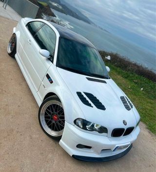 BMW E46 M3 GTR !! TODO HOMOLOGADO !! . Frontal GTR . Faros “ojos de ángel” . Capó Vorsteiner GTR . Llantas BBS . Escape M3 . Maletero M3 CS . Parachoques trasero M3 carbono real . Asientos eléctricos . Cambio de marchas con grupo corto . Diferencial autoblocante . Tacometro M3 . Volante M3 alcantara . Admision fibra de carbono real . Porta martriculas pequeño . Barra de torreta en el motor . Branqueas laterales M3 . llave BMW ultima generacion . Pilotos traseros led . Retrovisores M3 . Suspension roscada El coche está mimado al detalle y se encuentra en un estado excelente, siempre muy bien cuidado. Ha tenido únicamente tres propietarios. Dispone de la ITV vigente, pasada hace tres meses. Se entrega con todas las revisiones recién realizadas y con factura: cambio de aceite de motor, aceite de la caja de cambios, todos los filtros, bujías y correas, listo para que su próximo dueño lo disfrute en estado impoluto. «Pocas unidades de E46 como esta en España. Acepto prueba mecánica de cualquier tipo con Need Car Help u otra compañía.»
