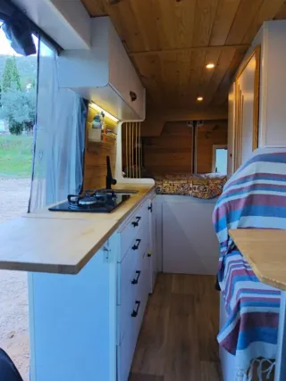 Compré esta furgoneta para hacer la Camper y la verdad que no la he usado prácticamente nada los materiales son bastante buenos madera lacada blanca. Faltaría ultimar algún detalle como poner ventilación pero la verdad es que hay muy buena base. Mecánicamente hablando la furgo tiene el mantenimiento hecho lo único que habría que hacer es limpiar el catalizador ya que presenta fallo motor porque tuvo una raja en una tubería del turbo y estuvo haciendo mala mezcla de ahí que se obstruyese parcialmente el filtro de partículas la reparación no es más cara de €500 euros. Aun así la furgoneta anda y funciona a la perfección. Acepto coche o moto de enduro como forma de pago