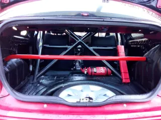 Barras, barras refuerzos (3). Separadores, latiguillos metálicos. Puente trasero ancho y pasado a discos, discos y pastillas nuevas. Neumáticos good year, radiador aceite, líquidos nuevos y no sé cuántas cosas más. NO HOMOLOGADO. Vendo o cambio por algo de mi interés.
