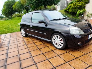 OPORTUNIDAD Escucho ofertas Clio 1.6 16v, recién pintado en negro con reflejos rojos (código BLM0111.00). Estéticamente impecable y con todo al día de mecánica. Tiene 185.000 km reales, ITV pasada y está listo para andar sin hacerle nada. Distribución hecha a los 162.000 km (enero de 2023), con kit de la marca Gates. Lleva suspensión Bilstein B4. Llantas originales Renault en 16", enviadas a pintar a Portugal, con neumáticos nuevos y separadores en ambos ejes. Montado con defensas y taloneras originales de Clio Sport. Faros delanteros pulidos, traseros también pulidos y ligeramente oscurecidos. Luz matricula de led. Techo solar funcional, cristales tintados y homologados; incluido el propio techo. Interior muy cuidado: volante, tapicería y techo tapizados de nuevo. Radio Pioneer con Bluetooth y manos libres, altavoces nuevos. El aire acondicionado no funciona, pero entre el techo solar y ventanillas abiertas ventila bien. Se usa los fines de semana como coche de paseo. Se vende por reorganización del garaje y cambio de proyecto. No cambios. No curiosos. Solo gente seria.