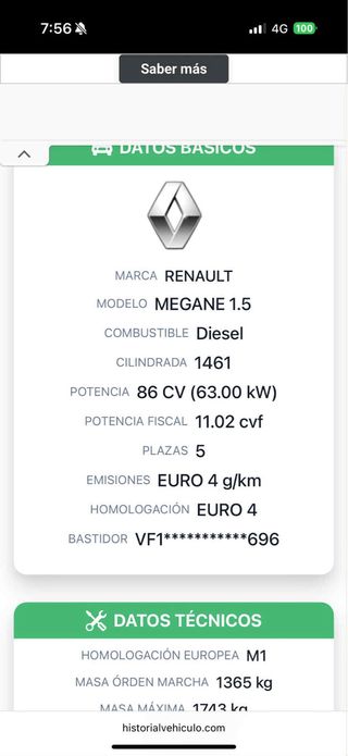 Renault Mégane 1.5 dCi 95CV • 6 velocidades • Diesel • Año 2014 • Distintivo B • Restyling ITV en vigor recién pasada. Mantenimiento al día. 300.000 km, pero en muy buen estado general, vehículo muy cuidado y de consumo mínimo, ideal para hacer kilómetros sin problemas. Seguro mecánico incluido en el precio durante 1 año, con coberturas: • Por avería hasta 2.500 € • Por contrato hasta 6.000 € Con cobertura de motor, caja de cambios, alternador, motor de arranque, inyectores, turbo, etc. Libre elección de taller y cobertura nacional y europea. Extras y equipamiento: • Climatizador • Dos llaves con mando a distancia • Elevalunas eléctricos • Control de velocidad crucero y limitador • Ordenador de abordo • Volante multifuncional • ABS • ESP • Radio CD, MP3, auxiliar y Bluetooth • Etc. Vehículo listo para usar, muy eficiente y perfecto para quien necesite un coche económico y fiable para desplazamientos largos. Se acepta vehículo como parte de pago. Se puede ver y probar sin compromiso. Entrega inmediata el mismo día del pago.