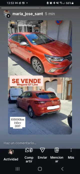 Se vende Renault Mégane compacto, en muy buen estado y listo para usar, sin necesidad de hacerle nada. 🔧 Motor: 1.2 gasolina ⚡ Potencia: 116 CV (85 kW) ⚙️ Cambio: manual 🚗 Tracción: delantera 🌱 Etiqueta medioambiental: C 📅 Antigüedad: 12 años 📄 ITV: recién pasada 💨 Emisiones CO₂: 119 g/km ✨ Equipamiento destacado: Bluetooth Sistema Start & Stop (Eco2) Aire acondicionado Dirección asistida Elevalunas eléctricos Cierre centralizado Muy bajo consumo para su potencia 🛠️ Estado general: Coche cuidado, mecánicamente va muy bien, interior y exterior en buen estado. Ideal para ciudad y carretera, cómodo y fiable.
