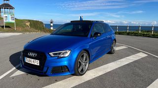 Audi A3 TFSI 2.0 190CV Black Line Edition Azul Ara efecto cristal Equipamiento extra (de origen): - Paquete deportivo S Line - Paquete Black Line - Llantas 19” - Techo panorámico de cristal - Cristales oscuros en parte trasera - Asientos delanteros deportivos de confort - Tapicería en cuero napa fina con grabado S - Revestimiento de cuero en puertas y consola central - Volante deportivo de tres radios multifuncional achatado en la parte inferior - Gancho remolque basculante, con desbloqueo eléctrico - Retrovisores calefactables y plegables eléctricamente Equipamiento de serie: - Climatizador Confort Plus - Control automático de velocidad (Tempomat) - Audi Drive select - Dirección asistida servotronic - Programa electrónico de estabilización ESP - Suspensión deportiva - Cambio manual de 6 marchas, totalmente sincronizado - Faros principales en tecnología LED - Regulación automática del alcance de las luces - Sensor de luz y lluvia - Elevalunas eléctricos - Asistente de arranque en pendiente (Audi hold assist) - Audi parking system plus con indicación selectiva (delantero y trasero) - Apoyabrazos central delantero con compartimento interior - Molduras de entrada con inserciones decorativas en aluminio - Revestimiento interior del techo en negro - Cierre centralizado por control remoto, con accionamiento desde el interior - Fijación para asientos ISOFIX para niños tamaño III - Paquete Connectivity (android auto y carplay) - Instalación básica manos libres (Bluetooth) para teléfono móvil - 8 altavoces pasivos + subwoofer en maletero Comprado en Noviembre de 2017 Un único dueño y conductor Lavado casi siempre a mano ITV hasta Noviembre 2027 y pasada perfecta sin ningún fallo Todas las revisiones hechas en taller oficial Audi Se incluyen todos los accesorios originales que venían con el vehículo: - Botiquín - Funda con manual y ficha técnica - Kit de reparación de pinchazos con compresor - Triángulos de emergencia - Dos llaves