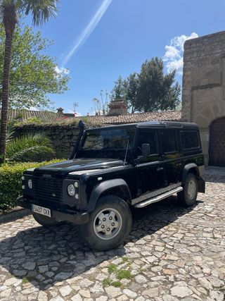 Land Rover Defender 110. 9 plazas homologadas. Asientos de cuero. ITV ANUAL. En vigor hasta FEB26. Estriberas, bola de remolque y lunas tintadas homologadas. Snorkel y luces led no homologadas. Funciona a la perfección. Cambio por defender 90 u otros coches de mi interés.