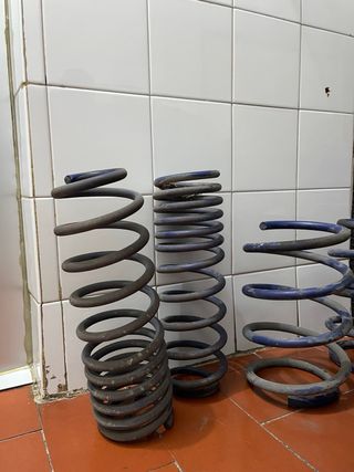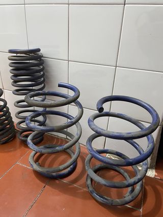 Muelles de suspensión deportiva para Renault Megane Coupe III. Mejoran la estética y el comportamiento del vehículo. La suspensión esta como nueva, la he llevado durante 2 años. - Color azul. - Diseño de muelle helicoidal. - Están las 4 suspensiones para las 4 ruedas. El precio puede ser negociable.