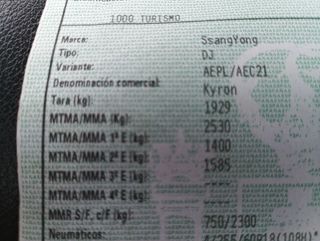 Ssangyong Kyron 2.0 141cv Manual Marzo 2007 dueño particular 204.000kms libro de mantenimiento Motor Mercedes por cadena de distribución -4x4 con marcha reductora -Techo solar -Volante multifunción en cuero -Asientos de cuero -Asientos delanteros calefactables -Control de crucero -Cierre centralizado -Retrovisores exteriores plegables y térmicos -Teléfono -ESP, ABS -Control de tracción -Sistema activo antivuelco -Rieles en techo -Lunas tintadas -Faros de xenón -Etiqueta de contaminación B Precio: 6.900€ garantía un año a nivel nacional El texto puede contener errores, mejor consultar con el comercial Transporte (consultar con comercial) Gastos de transferencia 200€ Atendemos días festivos con cita previa Atendemos en horario comercial, pero mejor con cita previa.