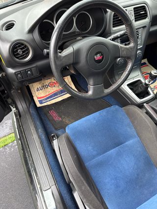 Se vende sti en buen estado importado de alemania y matriculado en españa (aun falta itv) 90000km. lleva radiador mishimoto, refrigerador de aceite, suspension roscada k&n (homologado este) escape greddy desde colectores hasta final, filtro de aire hks, valvula blow off hks, intercooler perrin, turbo ampliado, se entrega para temas de itv el escape original, las barras estabilizadoras y suspension. Interior: los asientos calefactables, paneles de la puerta y moqueta azules alcantara sti, 4 4elojes de presion (turbo, t° esc, presion y t° aceite), radio android. llantas oz racing ultraleggera neumaticos Yokohama 225/40/18R en perfecto estado frenos brembro de serie con discos delanteros ventilados se podria negociar pero no acepto coches a cambio. cualquier otra cosa me escribis.