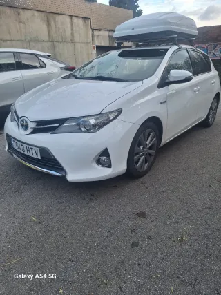 Vendo Toyota Auris Hybrid Advance Tour Sport, la versión más equipada de la gama 2015. Con todos los extras menos el control por voz. Motor híbrido autorrecargable con 136 CV, cambio automático CVT, consumo medio real de solo 3,8 l/100 km. Motivo de la venta: Nos dan coche de empresa. Equipamiento destacado (Advance Tour Sport): - Llantas de aleación de 17′′ Tour Sport - con acabado bicolor - Faros Bi-LED con antiniebla LED y luces diurnas LED - Faros de luces largas automáticas (AHS) - Limpiaparabrisas automático con sensor de lluvia - Asientos delanteros calefactables - Techo solar - Toyota Touch 2 & Go**: pantalla táctil 7′′, navegador integrado, Bluetooth, USB y cámara de visión trasera - Climatizador automático bizona - Control de crucero adaptable y limitador de velocidad - Sensores de aparcamiento delanteros y traseros - Espejo interior electrocromático*- y retrovisores calefactables con plegado eléctrico - Asientos deportivos en tejido mixto con detalles Tour Sport - Volante y pomo de cambio forrados en cuero con mandos integrados - Toyota Safety Sense: sistema pre-colisión, alerta de cambio involuntario de carril y detección de peatones Historial y estado: - Matriculación 2015 - Siempre guardado en garaje, muy cuidado - Mantenimientos al día y revisiones oficiales Toyota Accesorios adicionales (300 €): * He añadido una foto - Cofre THULE Pacific 100 - Barras de techo CRUZ Perfecto estado. Gran oportunidad. A nosotros, con dos niños pequeños, el cofre nos ha ido de fábula.