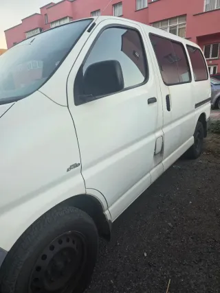 Furgoneta Toyota Hiace del año 1998. ITV pasada, uso diario sin problemas conocidos en el motor. Múltiples defectos en la carrocería. Espacio de carga libre, sin los asientos traseros.  Radio desconectada por problema previo de derivación eléctrica, actualmente resuelto. Roturas en el tejido de los asientos (conductor y acompañante derecho).