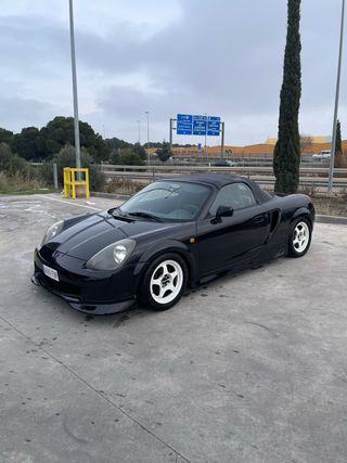 Toyota mr2 en buen estado, volante a la izquierda, 142000km. Tiene suspensiones roscadas D2 racing con ajuste para el camber y homologado en ficha técnica, itv pasada y todo al día. Tiene algun desperfecto en la capota.