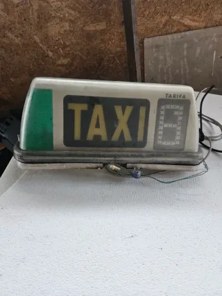 Módulo de señalización LED diseñado para la parte superior de ın taxi. Presenta el texto TAXI er etras amarillas y un indicador numérico.