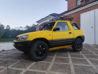 Toyota Rav4 2.0. tracción 4x4 con bloqueo de diferencial central. ITV Hasta 2027. Vehículo histórico (ITV cada dos años y seguro 90€) El coche se ha restaurado al completo y al detalle. Chapa y chasis: recién pintado con imprimación bicomponente antioxidante y capa raptor con código color personalizado. 0 óxidos. Bajos repasados y antigravillado nuevo. Interior completamente limpio y desinfectado. Mecánica: Revisado al completo, tiene nuevo (menos de 500km) aceite motul 8100 + ceratec Liqui Moly, filtro de aceite, filtro de aire, filtro de gasolina, 4bujias NGK, Termostato + muelles traseros originales, fuelles de palieres delanteros nuevos. Liquido de frenos y embrague nuevo y purgado. Tubos de refrigerante, caja de filtro, tubos de vacío limpiador e hidratados Extras: techo solar con doble función (mecanismo engrasado y revisado), barras de techo originales Toyota. Baca africana nueva. Instalación auxiliar con barras led interiores traseras (x2), tomas USB traseras (x2) Por hacer: velocímetro (es barato y rápido) si da tiempo se entrega solventado.