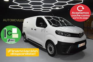 VEHÍCULO NACIONAL HISTORIAL DE MANTENIMIENTO IVA DEDUCIBLE E INCLUIDO EN EL PRECIO ÚNICO PROPIETARIO GASTOS DE GESTIÓN Y CAMBIO DE NOMBRE 330€ ETIQUETA C - Paquete Confort- Paquete Visión- Carrocería/estructura: Caja- Luces antiniebla- Perfiles cromados para Luces antiniebla- 3. Luces de freno- Luz de día- Molduras laterales protectoras Negro- Cubierta/revestimiento del umbral- Sistema de audio: Multimedia Toyota Pro Touch- Mando distancia para la radio el Volante- Ordenador de a bordo- Control de crucero (Tempomat)- Sistema limitador de velocidad- Airbag conductor/acompañante- Tabique separador del compartimento de carga con Ventana- Asientos confort- Asiento delante izquierda regulable en altura- Asiento del acompañante doble- Soporte lumbar Asiento delante izquierda- Equipamiento asientos: 3° asiento- Puertas traseras doble hoja Sin Lunas- Puerta corredera Espacio acompañante/Compartimento carga derecha- Inmovilizador- Guantera con Función refrigeradora- Toyota Smart Cargo- Sistema antibloqueo (ABS)- Distribuidor eléctrónico de frenada- Asistente del freno- Asistente a la conducción: Sensor-reconocimiento de cansancio- Rueda de repuesto- Columna de dirección (Volante) regulable- Dirección asistida eléctric.- Toyota tracción Select (TTS)- Programa electrónico de estabilidad (VSC)- Tipo transmisión: Tracción delantera- Asistente a la conducción: Control de subidas en montes (HAC)- Batalla 3275 mm- Caja de cambios 6-marcha- Reducción polución según norma gases escape Euro 6- Stop&Go-System (TSGS)- Filtro partículas- Motor 2,0 Ltr. - 90 kW D-4D CAT