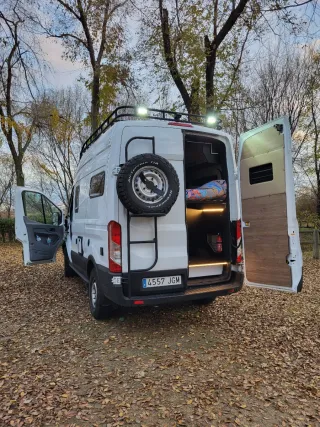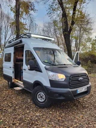"Ford transint L2h3 4x2" camper homologada autocaravana viajar/dormir 2 -Ruedas BF goodrich -Suspension elevada -Gran garaje para dos bicicletas (altura 855mm) -cama 1830x1275mm -Deposito limpias 170L -Deposiyo aguas grises 100L -Nevera compresor 95L (vitrifrigo) -horno a gas (thetford) -inodoro wc fijo (casete) -plato ducha inox -ducha exterior -calefacción y agua caliente sistema webasto evo5 -baca y escalera/porta rueda hecha a medida en aluminio (focos exteriores traseros y delantero) -2 placas solares de 130w - toldo fianma f45 -escalon eléctrico thule -cámara trasera