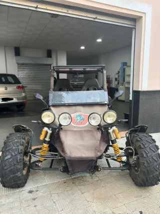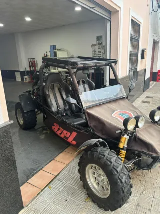 Azel dazon 1100cc totalmente original excepto amortiguadores delanteros y escape akrapovic -Manual 5 velocidades más marcha atrás. -Traccion trasera -Neumaticos al 70 % -Documentacion en regla EXCEPTO ITV que no se renovó por no usarse el buggy. -Amortiguadores delanteros OHLINS preparados por DMX -Barra LED ( No aparece en las fotos) -Doy 2 amortiguadores más OHLINS + 2 amortiguadores originales. -Siempre a dormido en garaje. -Regalo rotulas de repuesto a estrenar. Mantenimientos al día. -Regalo 2 llantas con neumáticos de asfalto