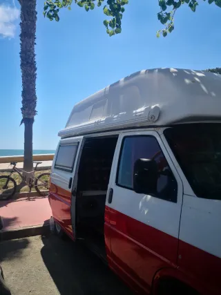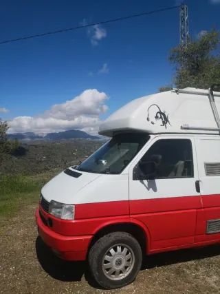 Vendemos nuestra querida Volkswagen T4 california hecha por westfalia por cambio a gran volumen tiene el motor 2.5 TDI ACV con aire acondicionado, no hay que hacerle nada. ITV pasada 1 mes Extras -Placa solar 150w (homologado) -Toldo Fiamma (homologado) -Porta bicicletas Fiamma S (3 bicis) -4 sillas y mesa exterior -camara marcha atrás - Aislantes térmicos todas las ventanas - Tiene colchón viscoelástico a medida - Los 4 amortiguadores recién cambiados - Disco, pastillas delanteros y traseros recién cambiados - Duerme siempre en garaje NO HACER OFERTAS ABSURDAS NO CAMBIO SOLO VENTA!