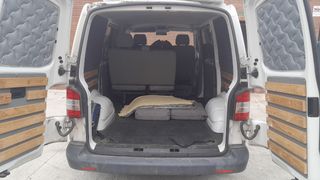 Vw t6 equipada con cama interior ( kit Andorra camper valorado en 800€) y segunda bateria. Techo cama sca. Todo homologado en ficha. Muy cuidada. Muchos extras: termicos ventana, cuñas para equilibrar el vehículo, portabicicletas original .... Al dia de mecanica ( correas recien cambiadas, bateria cambiada revision anual hecha. NO TIENE MUEBLES DE COCINA, PICA...