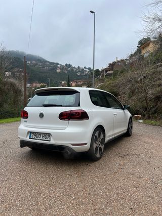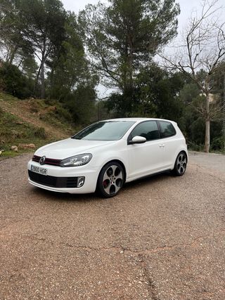 Vendo Golf GTI 6 con 44.825 kilómetros reales (ver foto). Comprado nuevo en España, soy único dueño, matriculado en junio 2010. Leer descripción de piezas cambiadas (en una de las fotos, creo que no me dejo nada). Salvo la suspensión Tecnoshock, todo lo demás lo he cambiado yo, sé perfectamente cómo se ha tocado el coche y el trato que ha tenido. El coche lo compré con el extra de los faros traseros LEDS y luego le puse la pantalla/radio del Golf 7, la RCD330+. Cambios de aceite motor (Motul Specific 5w30) y filtros, más valvulina cada 6000km. Coche siempre en garaje, no se ha fumado ni comido dentro, ni animales dentro, etc. De hecho aún huele un poco a plástico nuevo. Con la repro, en banco dio 295cv y 470Nm de par, tengo gráfica. Con las piezas cambiadas de aluminio, el coche pesó en báscula con medio depósito, 1318kg. Tiene hecho ensanche con chapa soldada en aletas delanteras y traseras, ensanche con aportación de plástico y soldado de parachoques delantero y trasero. También ensanche de las piezas de los antinieblas de SRS Tech y taloneras, labio frontal y traseros Maxton Design. El alerón también se ha prolongado un poco. Se ha ensanchado unos 15cm aprox./lado. Qué falta: pintarlo/vinilarlo y homologar el ensanche. Resto de piezas ya homologadas y en ficha técnica. Por qué lo vendo así: me lo querían comprar así para pintarlo en otro color más llamativo o vinilarlo, por lo que quizás sea mejor tal cual y que se pinte/vinile a decisión/gusto del comprador, así también tanteo opciones. Aunque igual me lo acabo quedando, ya veré. Lo compré por capricho y al tener otros coches para uso diario, apenas le he hecho kilómetros a este. Está impecable, único vaya. Tengo las piezas originales que se han reemplazado por las de aluminio (como trapecios, manguetas, etc), disponibles que puedo dar con la venta y luego tengo otras piezas en mi perfil a la venta tipo culata preparada, kit turbo, bomba gasolina y todo eso. Piezas caras de por sí y de calidad.
