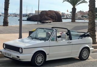 En venta Vw Golf Cabrio 1.6 gasolina con 75CV. Perfectamente conservado, Golf mk1 descapotable con cubrecapota, volante y pomo de madera Sparco, llantas deportivas, radio CD Pioneer. Perfecto estado de mecánica, chapa, pintura, tapicería y capota. Con las ruedas al 90% de su vida. Un clásico al alza para llegar y disfrutar