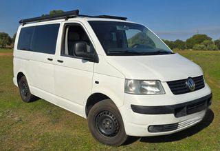 Volkswagen Transporter T5 1.9 TDI camperizada, en muy buenas condiciones, homologada como vehículo mixto de 4 plazas (piloto, copiloto y banqueta doble trasera) la Itv la pasa cada año. Armario lateral con encimera y nevera de compresión, segunda batería, asiento copiloto giratorio, claraboya, mesa interior, colchón plegable viscolastico. Para mas información hablar por privado.